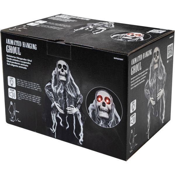 Fantasma Animado Colgante Negro de 80 cm. Ideal para transformar tu casa en una mansión embrujada, este aterrador espectro de ojos rojos brillantes está listo para embrujar tus fiestas de Halloween. Cuélgalo fácilmente y estremecerá a grandes y pequeños con su risa espeluznante que se activa al tacto. Este espeluznante producto está diseñado para interiores o espacios cubiertos, creando una atmósfera aterradora para tu fiesta.