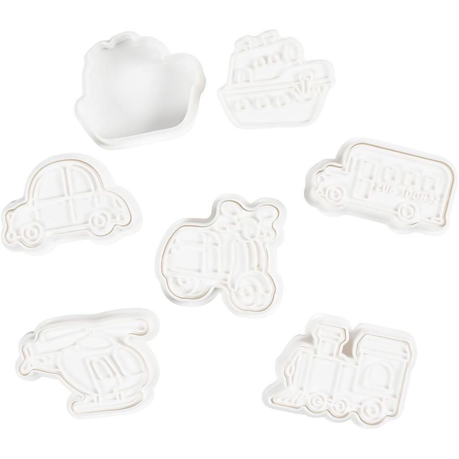 Estos cortadores de empuje son perfectos para decorar con elegancia tus pasteles, cupcakes y otros dulces. Además de usar pasta de azúcar y mazapán, funcionan de maravilla con masa de sal o arcilla polimérica para divertidas manualidades. Fácil de usar: simplemente extiende la masa, presiona el sello para revelar los hermosos detalles de cada medio de transporte y expulsa la forma fácilmente. ¡Una forma divertida y educativa de pasar tiempo de calidad con tus hijos!