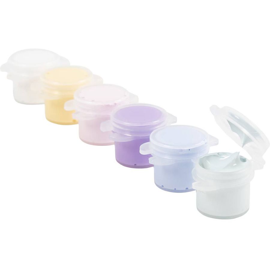 Añade un toque de creatividad a los proyectos artísticos de tu hijo con estos 6 botes pequeños de pintura acrílica en colores pastel. Ideales para estimular la imaginación, estas pinturas ofrecen una hermosa paleta de tonos suaves, perfectos para embellecer dibujos, manualidades y mucho más. Cada color se aplica fácilmente con 2 o 3 capas para garantizar una cobertura óptima, a la vez que permite una intensidad notable en la superficie. Diseñadas para ser duraderas, estas pinturas conservan su efectividad hasta por 2 años después de abrirlas. Aplícalas con un pincel para un acabado suave y recuerda enjuagar el pincel con agua tibia después de cada uso para prolongar su vida útil. Bríndele a tu hijo una gratificante experiencia artística con estos vibrantes colores, mientras desarrolla su creatividad y motricidad fina.