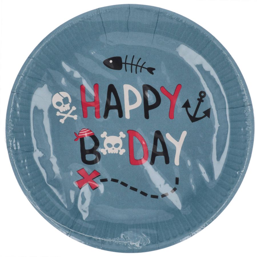 8 Platos de Fiesta Pirata! Perfectos para el cumpleaños de tu pequeño aventurero, estos platos con un diseño divertido despiertan la imaginación y le dan un toque festivo. Con un diámetro de