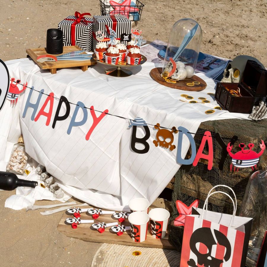 1 guirnalda de letras de fiesta pirata de feliz cumpleaños - 1,5 m
