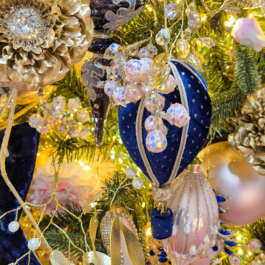 Lámpara colgante de terciopelo con forma de globo aerostático – azul medianoche