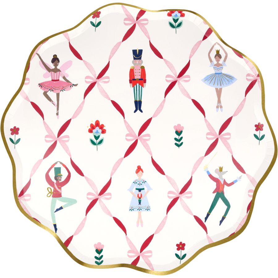 Descubre nuestro set de 8 platos Cascanueces Ballet, perfectos para convertir el cumpleaños de tu hijo en un momento mágico. Fabricados con papel de alta calidad (450 g/m²), estos platos no solo son prácticos, sino también decorativos, con su borde ondulado y detalles dorados brillantes que les dan un aspecto elegante. La marca Meri Meri garantiza un diseño refinado que deslumbrará a todos tus invitados. Cada plato mide 26,7 x 26,7 x 0,6 cm, lo que ofrece amplio espacio para servir tus platos favoritos y añadir un toque festivo a tu mesa. Perfectos para una fiesta con temática de ballet, estos platos encantarán tanto a niños como a adultos. ¡Consiente a tu pequeña bailarina con este toque elegante y temático que realzará la decoración de tu cumpleaños!