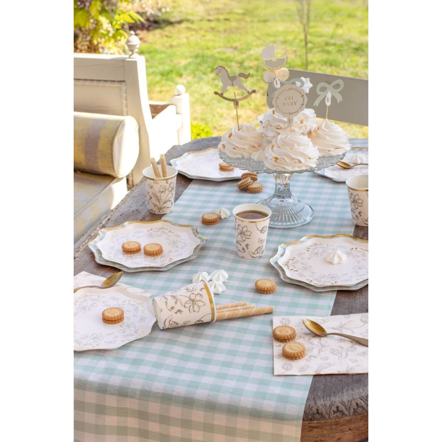 estampado de cuadros verdes que realzará la decoración de tu fiesta. Con sus generosas dimensiones de 40 cm de ancho y 5 m de largo, es perfecto para decorar la mesa en las fiestas de cumpleaños de tus hijos o celebraciones especiales.
