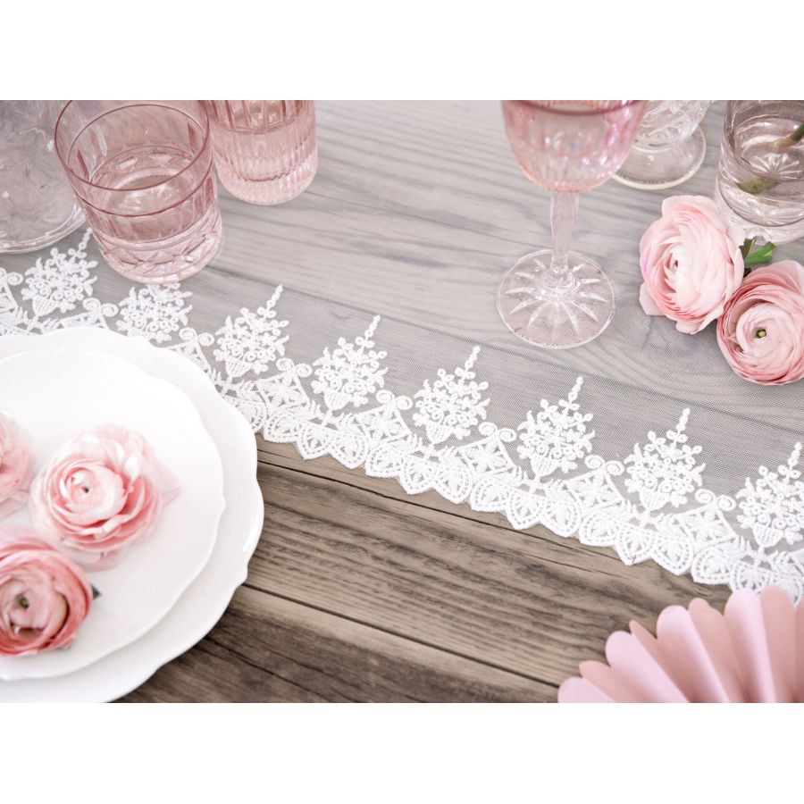 Alegra tu mesa con el hermoso Camino de Mesa de Encaje en blanco roto, ideal para tus celebraciones. Con un ancho aproximado de 45 cm y una generosa longitud de 9 m, este camino de mesa proporciona un elegante y delicado fondo para tus decoraciones. Dale un toque refinado y sofisticado a tu evento, ya sea cumpleaños, bautizos o cualquier otra ocasión especial.
