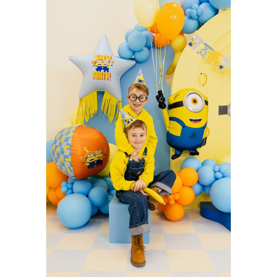 Descubre el Globo Gigante de Minions Mel de Aluminio, de 72 cm, ¡el accesorio perfecto para animar el cumpleaños de tu hijo! Este globo, con el famoso personaje Minion, es ideal para añadir un toque de diversión y color a la decoración de tu fiesta. Incluye una pajita para inflarlo, por lo que es fácil de llenar, ya sea con helio para que flote o simplemente con aire.