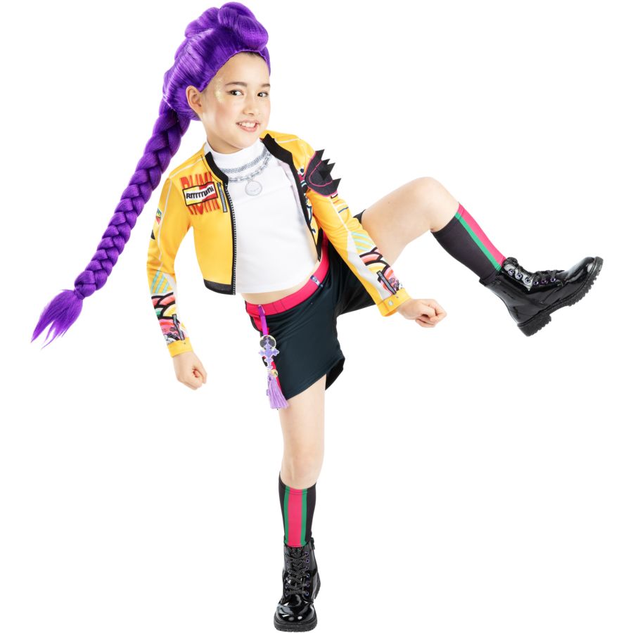 Disfraz de Rumi K-Pop Core, ¡perfecto para estar a la vanguardia de la moda musical! Este completo disfraz incluye una camiseta con chaqueta, pantalones cortos, calentadores y accesorios, todo diseñado para que tu pequeño fan del K-Pop brille. Hecho 100 % de poliéster, este disfraz garantiza una comodidad y durabilidad óptimas que resistirán incluso las coreografías más enérgicas.