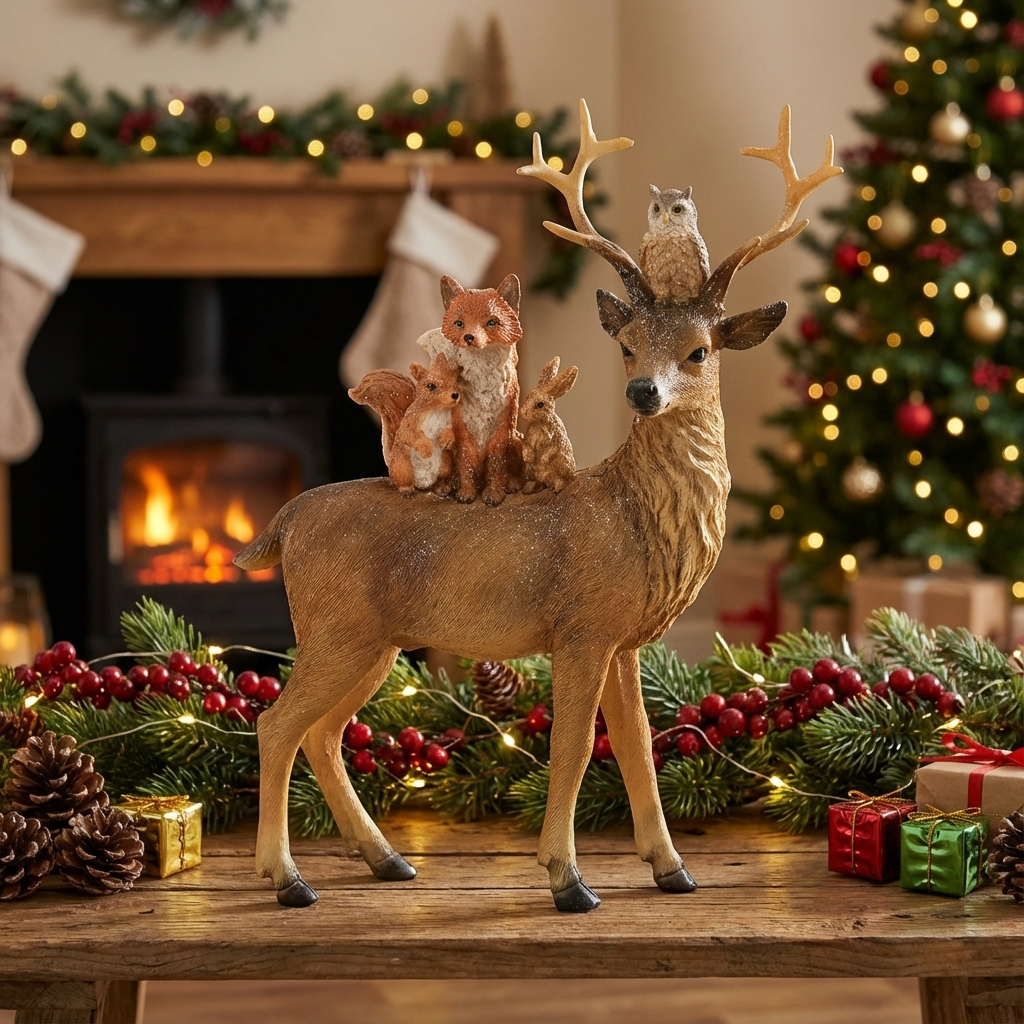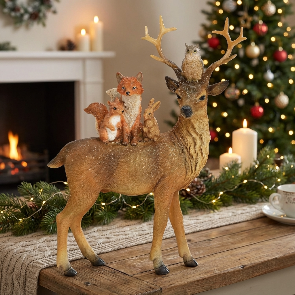 Decoración – Ciervo y amigos en poliuretano – Marrón con purpurina