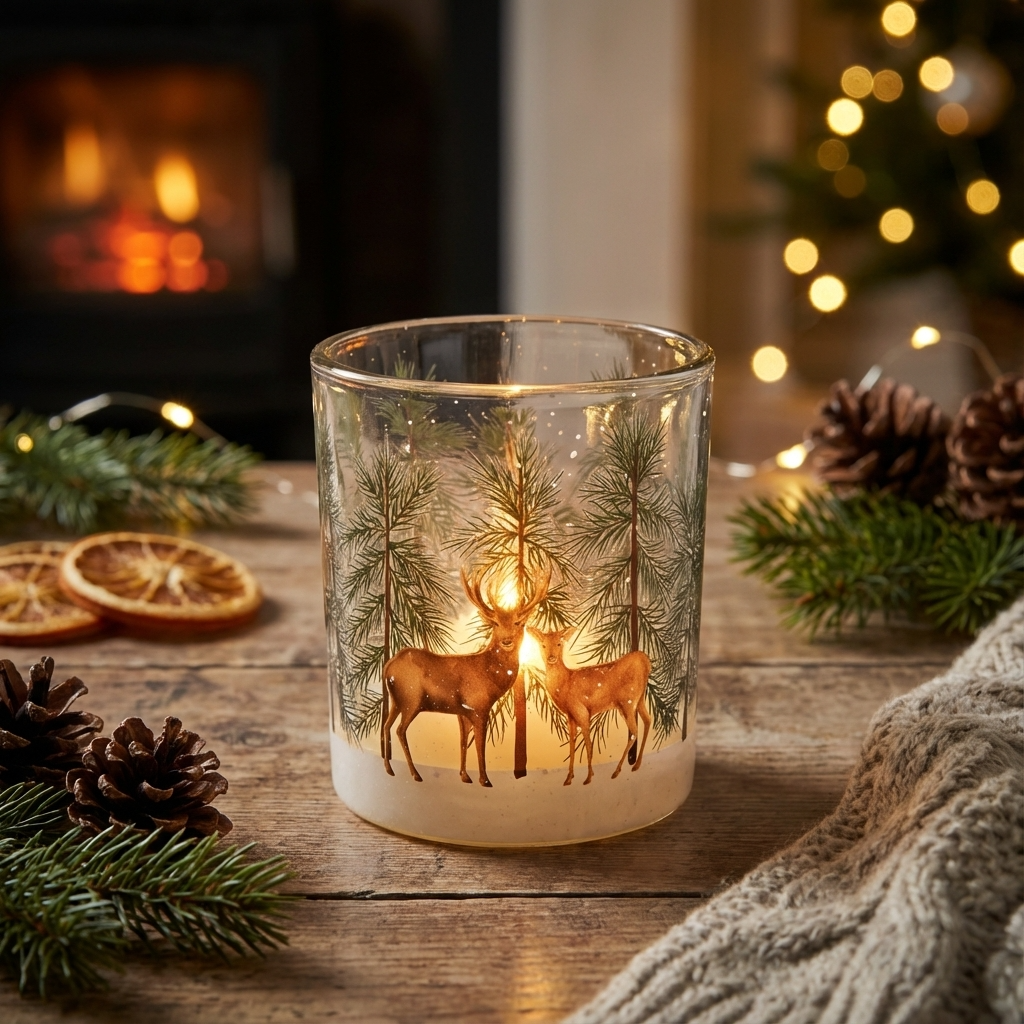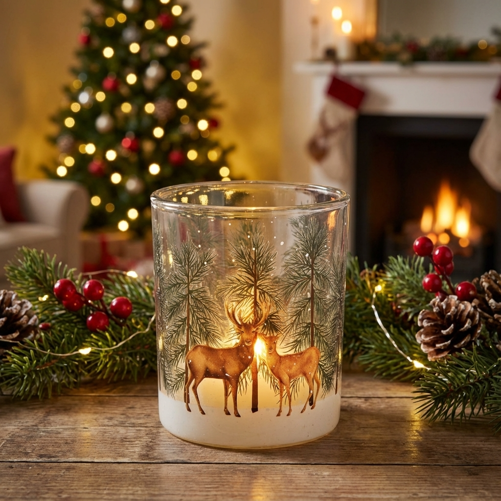 Añade un toque de magia navideña a tu hogar con este precioso portavelas de cristal con forma de ciervo. Con sus dimensiones ideales de 7 cm (ancho) x 8 cm (alto) x 7 cm (profundidad), se adapta perfectamente a cualquier espacio, creando un ambiente cálido y festivo. Su elegante diseño de cristal realza la majestuosidad de un ciervo, aportando un toque de distinción a tu decoración. Perfecto para iluminar tus veladas navideñas, este portavelas es imprescindible para toda madre que desee crear un hogar encantador. Su estilo atemporal y su calidad lo convierten en el complemento ideal para las fiestas. Deleita a tu familia e invitados con una iluminación inolvidable gracias a este excepcional accesorio.