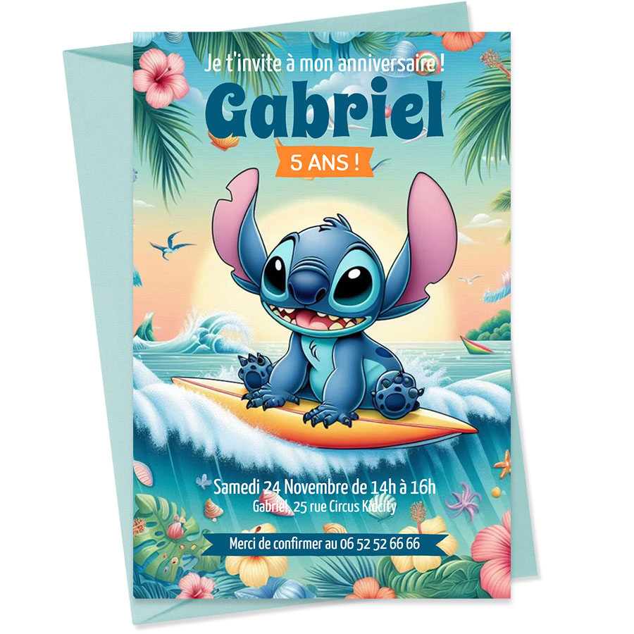Regala a tu hijo una fiesta de cumpleaños inolvidable con estas adorables invitaciones personalizadas de Stitch Hawái. Cada tarjeta, impresa por una cara, incluye un sobre a juego de Clairefontaine, una marca francesa reconocida por su calidad. Estas invitaciones le darán un toque personal a este evento especial y alegrarán la cara de todos los pequeños invitados.